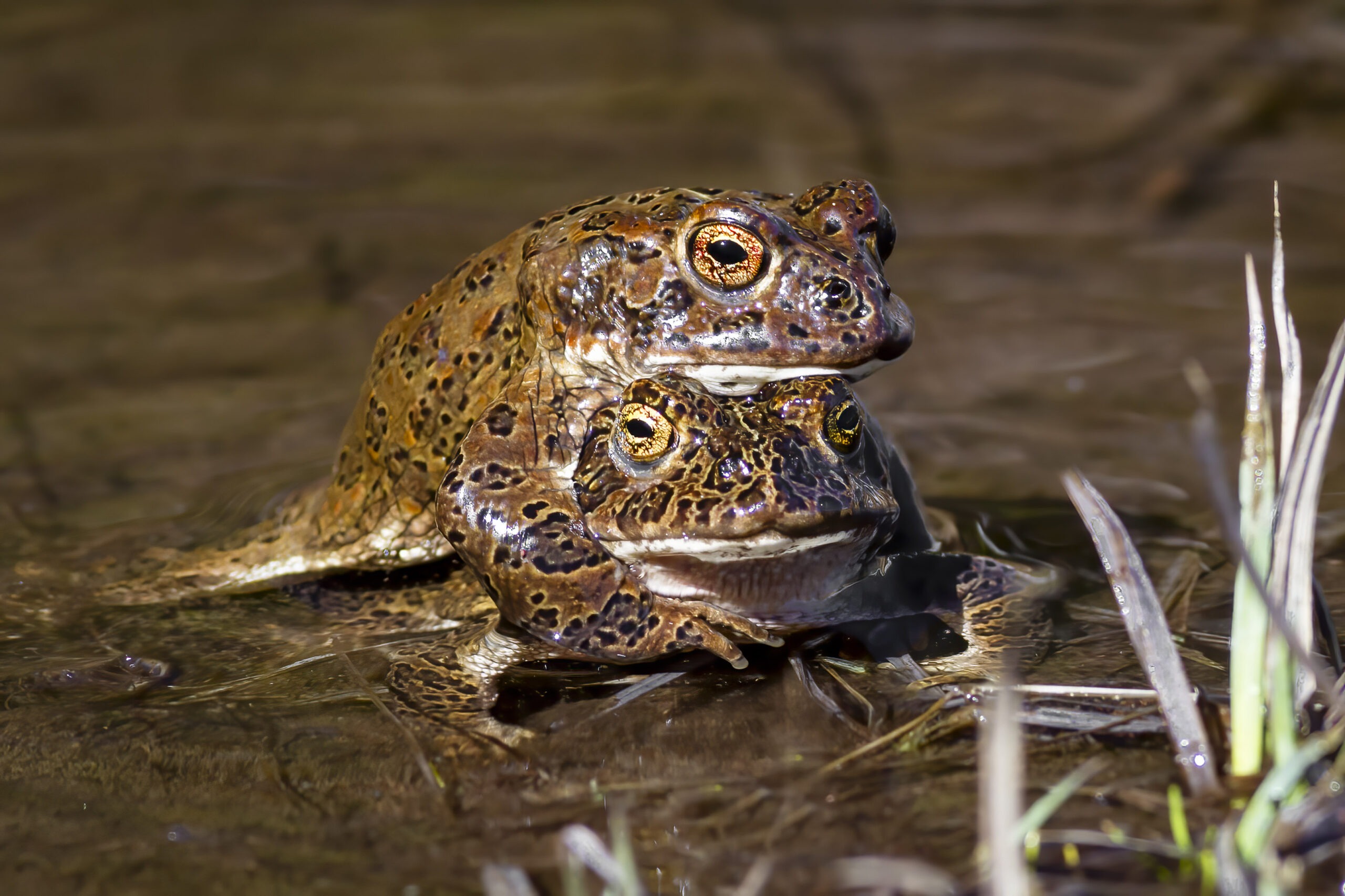 Federally threatened male Yosemite Toads (Anaxyrus canorus) wrestle during breeding season in Yosemite National Park, California. Photo by Robb Hirsch.