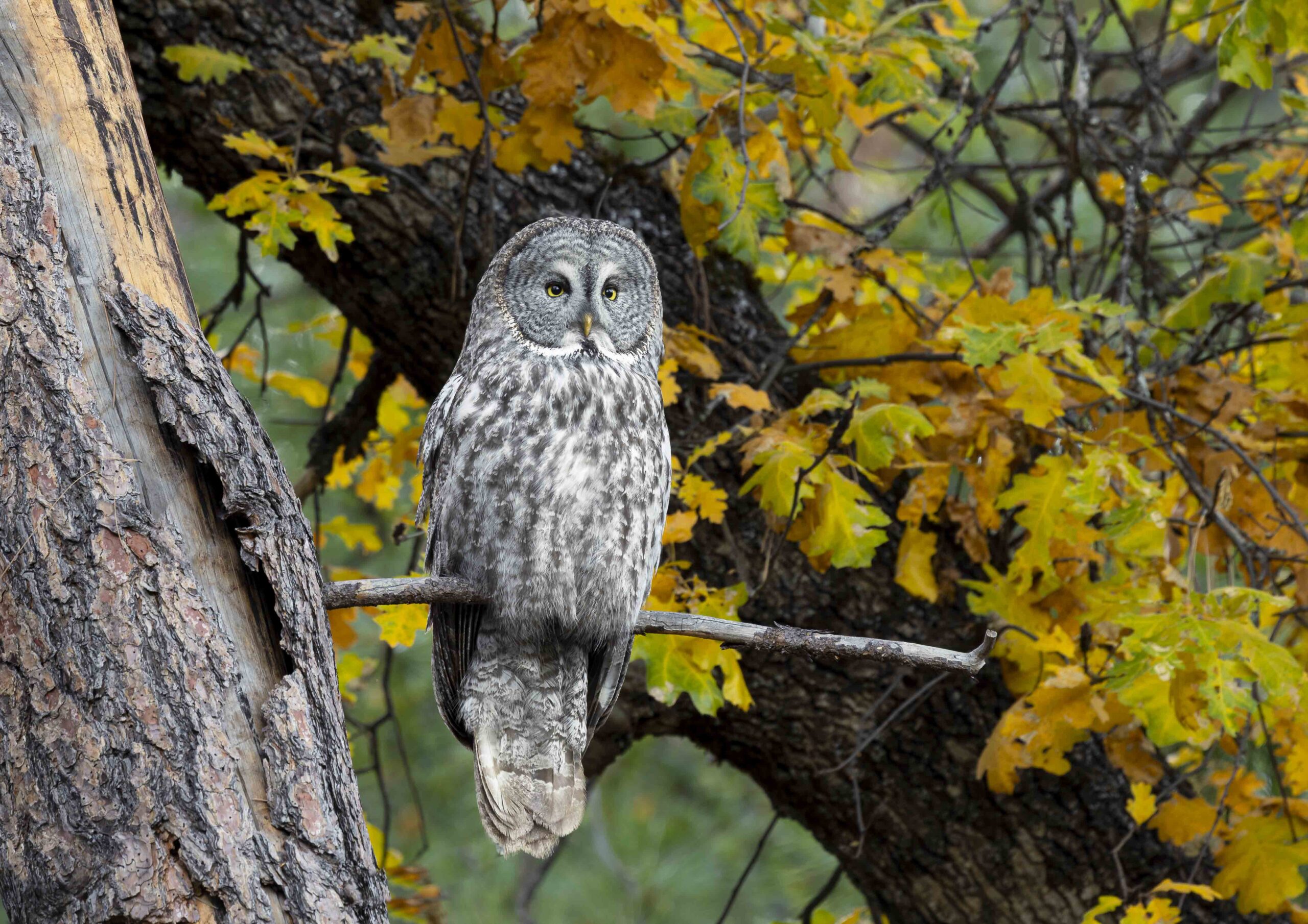 The largest owl in North America, the great gray owl, hunts primarily by sound as their facial discs help funnel noises to their ears. Photo by Robb Hirsch.